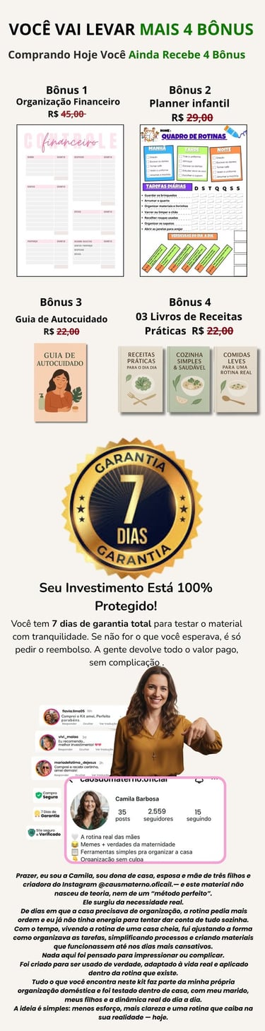 Sim. Você tem 7 dias de garantia. Se sentir que o kit não é para você, é só solicitar o reembolso dentro desse prazo, sem complicação.