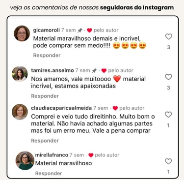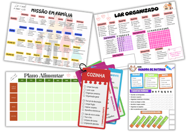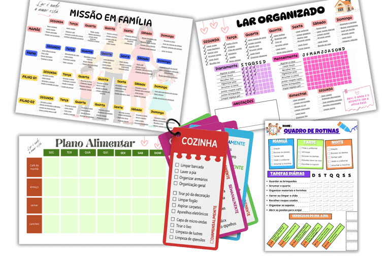 Todo o conteúdo é 100% digital. Você pode acessar, baixar e imprimir quando quiser. Há arquivos prontos para uso e também versões que podem ser personalizadas. O acesso aos materiais e conteúdos extras acontece pelo aplicativo.
